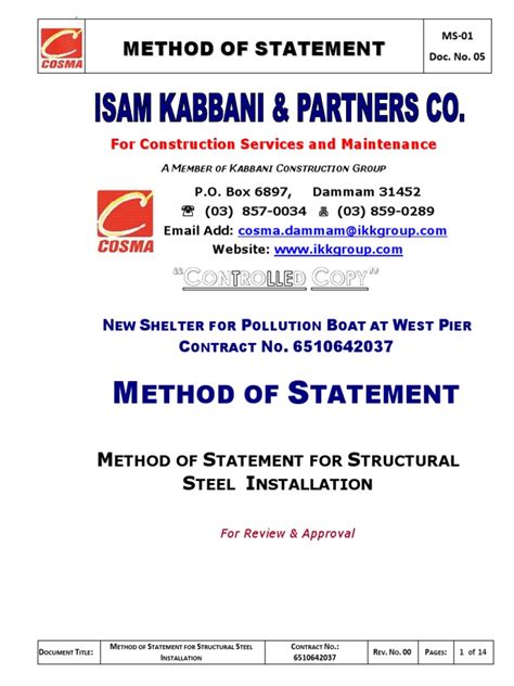 Download method statement for steel frame Epub